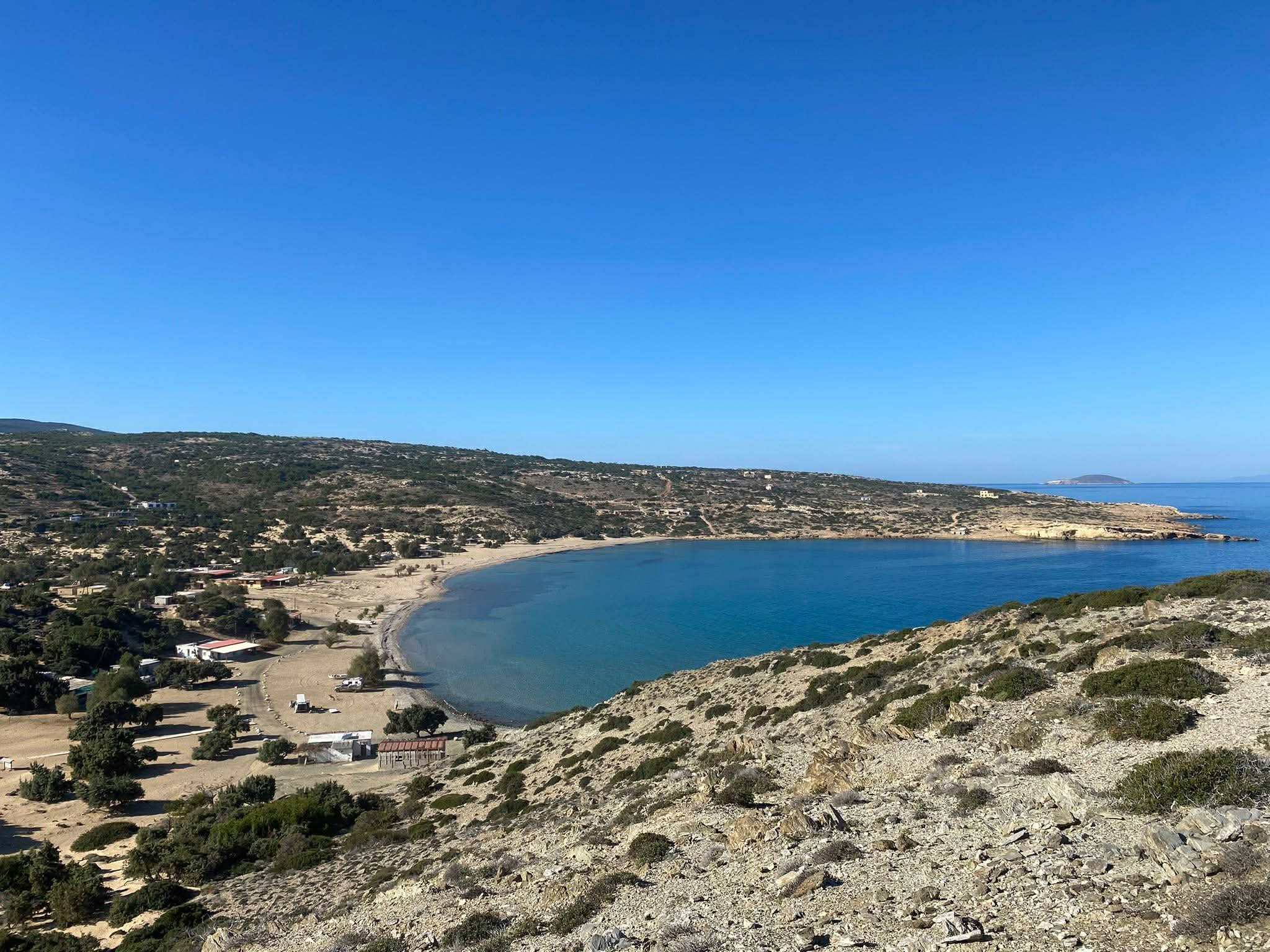 Sarakiniko is also the starting point for some of the most atmospheric winter hikes on the island. One of the most iconic routes is the trail leading up to Kastri Gavdos, a path that gradually climbs above the beach and offers panoramic views of the Libyan Sea and the snow‑capped Cretan mountains.
